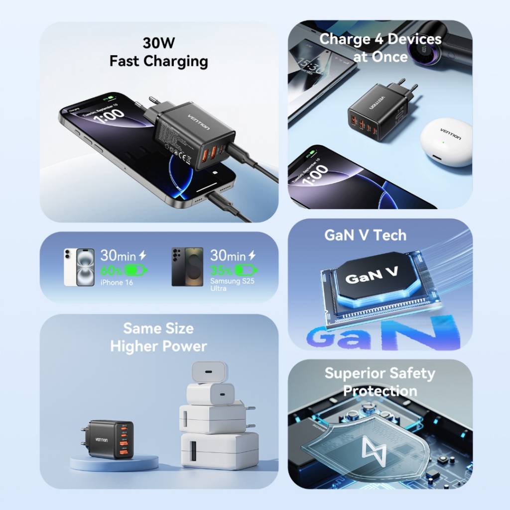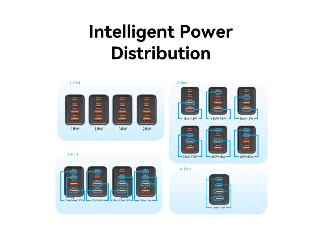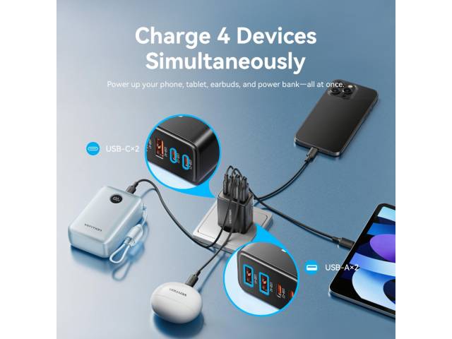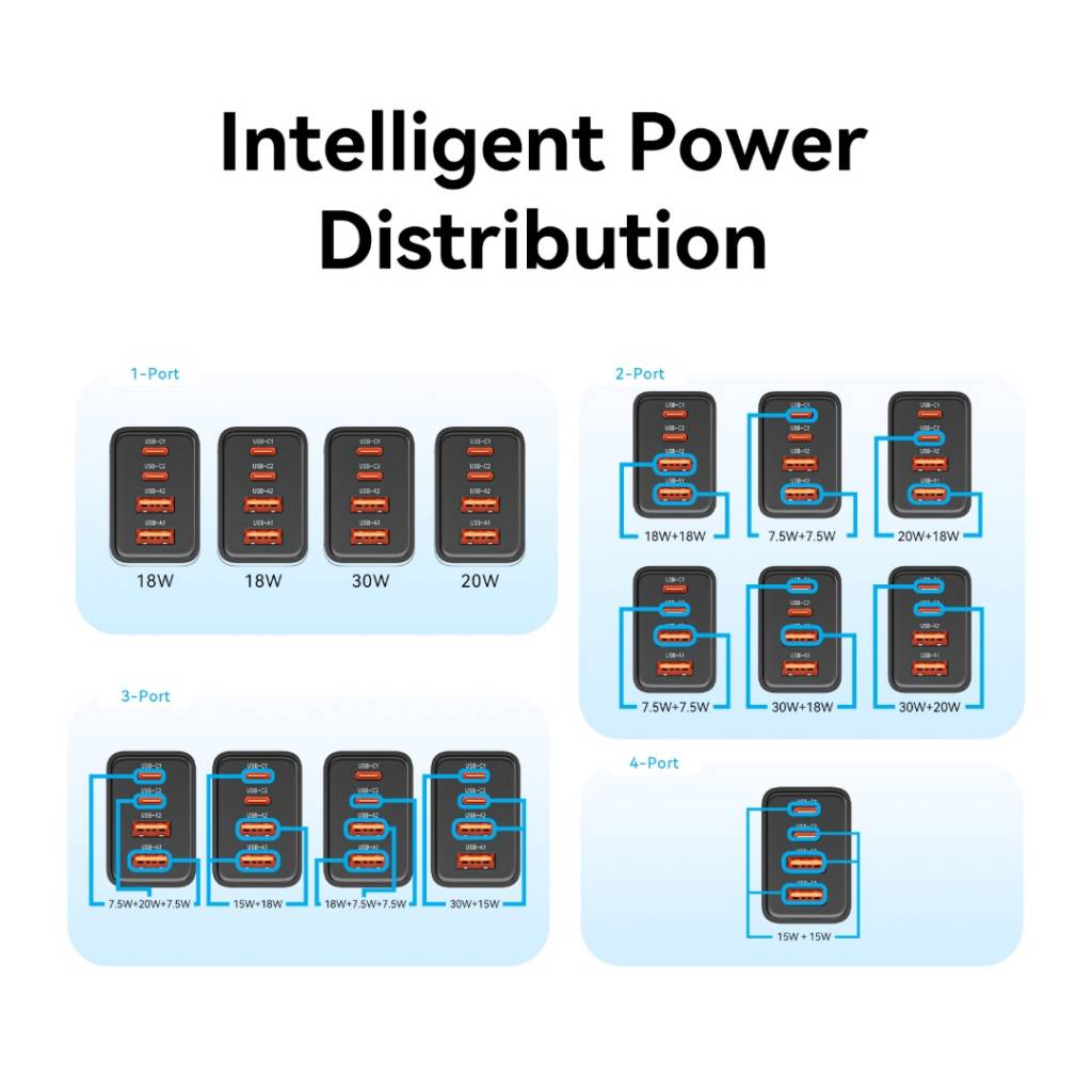 Salida (USB-C1 + USB-C2 + USB-A2): 30 W + 15 W