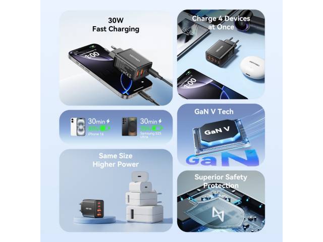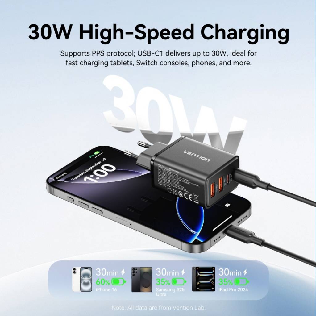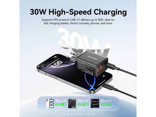 Salida (USB-C1 + USB-A2): 30 W + 18 W