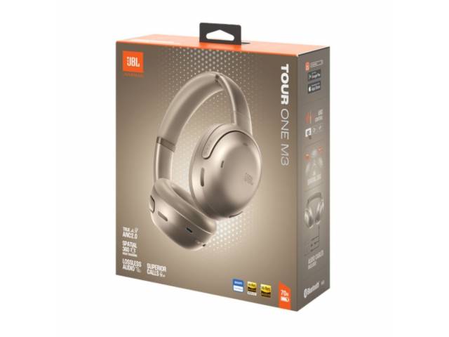 Auriculares JBL Tour One M3 inalámbricos con Bluetooth 5.3 para conexión estable y sonido sin cables. Sonido JBL Signature Sound con graves profundos y equilibrio para música, videos y llamadas. Cancelación activa de ruido adaptativa que se ajusta automáticamente al entorno. Micrófonos integrados con reducción de ruido para llamadas claras y nítidas. Hasta 60 h de batería con ANC activado y controles táctiles integrados en las orejeras. Diseño cómodo, elegante y plegable en color champagne para uso diario.