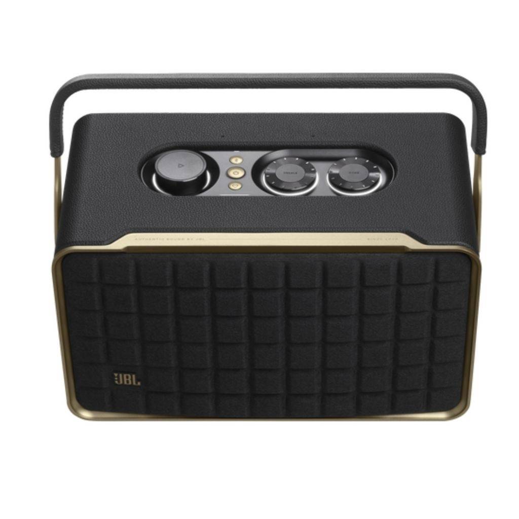 Altavoz portátil con sonido estéreo JBL potente y equilibrado, graves profundos y agudos nítidos para música, películas y más. Ofrece conectividad Wi-Fi, Bluetooth, AirPlay, Chromecast y Spotify Connect para reproducir desde tus apps favoritas sin cables. Incluye Google Assistant y Amazon Alexa integrados para control por voz y manos libres.* Con batería recargable de hasta 8 h, diseño retro elegante con asa premium para llevarlo donde quieras, y compatibilidad con reproducción en varias salas. Fabricado con materiales reciclados y controles intuitivos desde el altavoz o la app JBL One.