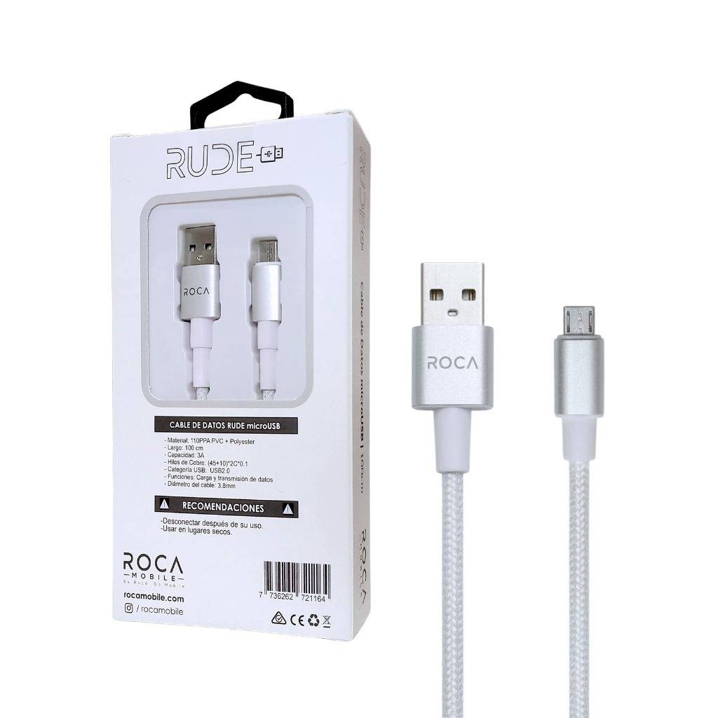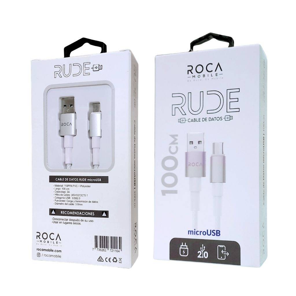 En stock En stock Cable de Datos ROCA RUDE USB a microUSB 300cm 2A Azul Regístrate para ver $ precios Cód.ACC010633