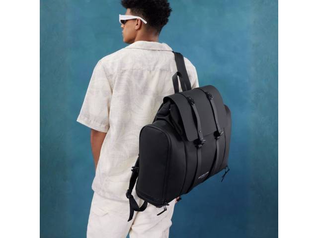 Material: 100 % poliéster reciclado con revestimiento de poliuretano. Herrajes metálicos: 100 % hierro (FE). Forro: 100 % poliéster reciclado (rPET).