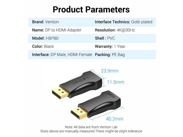 En stock En stock Adaptador DP a HDMI MachoHembra Negro 4K HBMB0 Vention Regístrate para ver $ precios Cód.INF019910