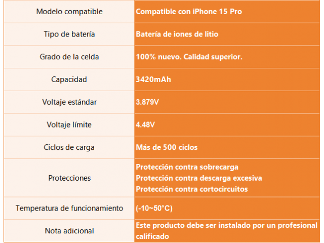 En stock En stock Batería para Apple iPhone 14 3580mAh Autoprogramable Alta Capacidad ORYRO Regístrate para ver $ precios Cód.REP018050