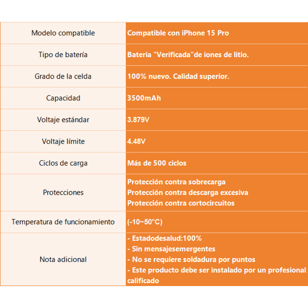 En stock En stock Batería para Apple iPhone 15 Pro Max 4780mAh ORYRO Regístrate para ver $ precios Cód.REP019382